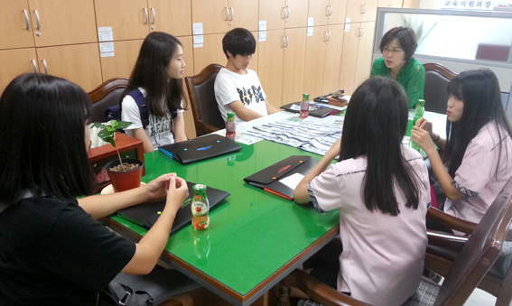 | ↑↑ 완주군 청소년상담복지센터가 실시한 진로교육 프로그램 ‘나의꿈 나의미래’에 참여한 청소년들이 진로 상담을 하고 있다. |