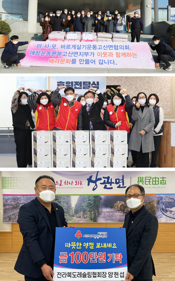 | ↑↑ (사진 위부터) 고산면 마사모, 완주우체국, 양현섭 전북레슬링협회장의 사랑나눔 실천. |