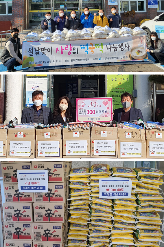 | ↑↑ (사진 위부터)완주군장애인연합회, (주)원창, 학래촌의 이웃사랑 나눔 실천. |