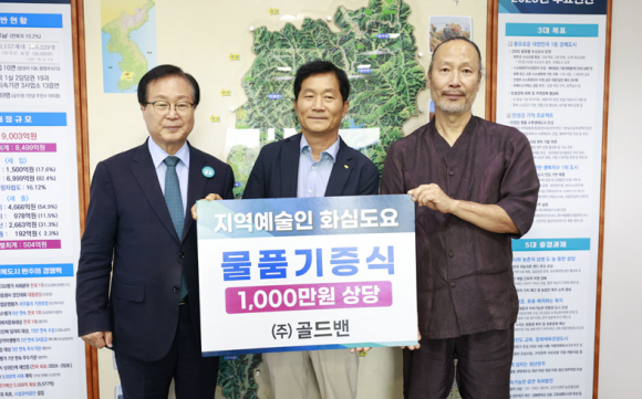 이번 기증은 지난 6월 화심도요 개요식에 참석한 ㈜골드밴 측이 현장에서 예술인이 겪는 어려움을 듣고, 지원 의사를 밝히면서 성사됐다.
