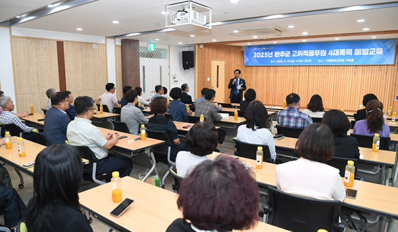 지난 19일 완주군은 완주가족문화교육원 가족홀에서 군수, 부군수, 국장, 부서장 등 고위직 공무원을 대상으로, 4대폭력(성희롱·성폭력·성매매·가정폭력) 예방교육을 실시했다.