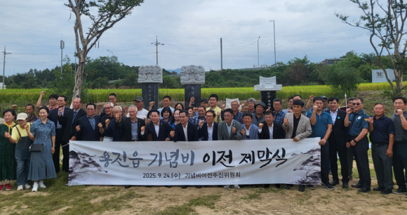 용진읍이 관내에 흩어져 있던 기념비 4기를 용진읍 행정복지센터 청사로 이전함에 따라 지난달 24일 기념비 이전 제막행사를 개최했다.