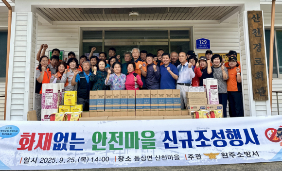 완주소방서(서장 이주상)는 지난달 25일 동상면 산천경로당에서 산천마을을 ‘화재 없는 안전마을’로 신규 지정하고 현판식을 가졌다.