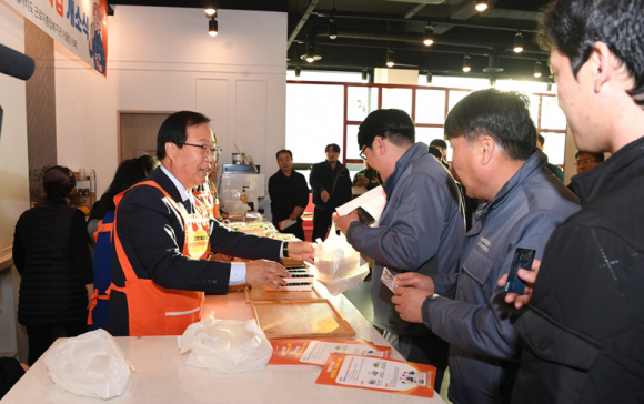| ↑↑ 완주군이 ‘산업단지 근로자 천원의 아침밥’ 파일럿 사업에 선정됐다. 사진은 산단 천원의 아침밥 배식 모습(자료사진). |