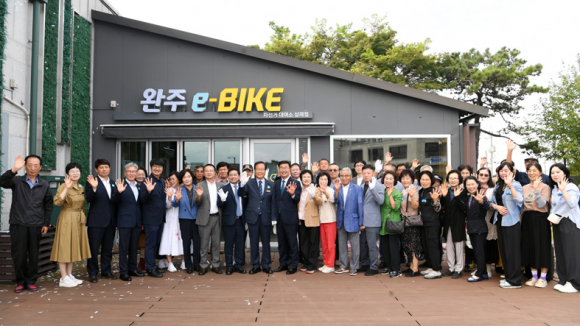 지난달 30일 완주군은 삼례 ‘쉬어가삼[례:]’에서 ‘e-BIKE 자전거 대여소’ 개소식을 열었다. 이 자리에는 유희태 완주군수와 군의원, 지역주민 등 100여 명이 참석했다.