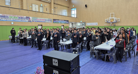 | ↑↑ 2025년 완주군 장애인 한마음 대회가 성황리에 개최됐다. 사진은 한마음 대회에서 국민의례를 하고 있는 모습. |