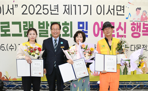 | ↑↑ 이서면 제11기 주민자치위원회가 주민자치프로그램 발표회를 열었다. 사진은 표창장 시상식 후 기념촬영을 하고 있는 모습. |