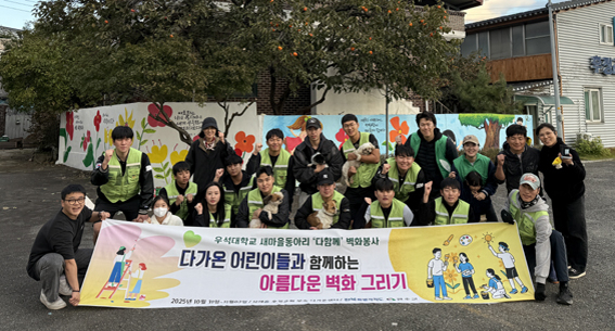 이번 사업은 밝고 쾌적한 마을 환경 조성을 위한 것으로, 우석대학교새마을동아리 회원 20명을 비롯해 라온청년새마을연대, 어린이, 마을주민 등이 함께 협업해 벽화를 완성했다.