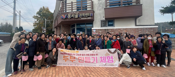 이번 체험은 지역 전통식품 전문가들의 안내 아래 진행됐으며, 콩을 불리고 갈아 끓인 뒤 응고시켜 틀에 넣는 전통적인 두부 제조 과정을 어르신들이 직접 체험했다.