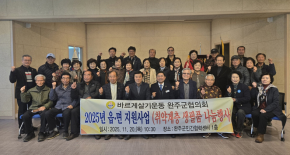 지난 20일 ‘2025년 읍·면 지원사업’의 일환으로, 완주군민간협력센터 2층 회의실에서 13개 읍면 위원장 등 40여 명이 참석한 가운데 ‘취약계층 생필품 나눔 행사’를 개최한 것.