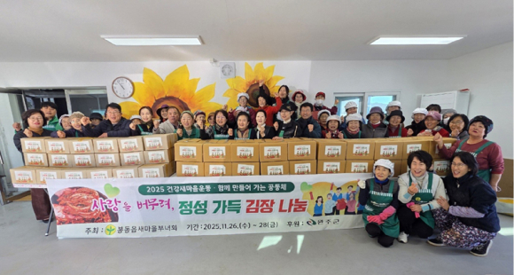 한편, 봉동읍 새마을부녀회는 매년 김장김치 나눔, 반찬 봉사, 환경정화활동 등 따뜻한 지역사회 만들기에 앞장서고 있다.
