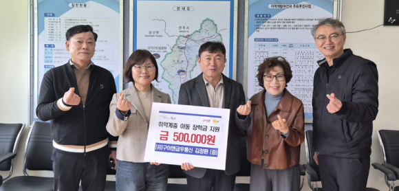 자체 바자회 수익금으로 청소년 위해 50만 원 기탁(유)구이앤금우통신(대표 김정환)이 구이면 지역사회보장협의체(공동위원장 최은아·전호순)에 취약계층 청소년을 위한 장학금 50만 원을 전달했다. 이번 장학금은 자체 바자회 수익금으로 경제적 어려움을 겪고 있는 청소년들이 건강하고 안정적으로 학업을 이어갈 수 있도록 돕고자 마련됐다.