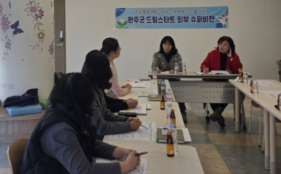 완주군 드림스타트는 최근 취약계층 아동의 효과적인 사례관리와 아동통합사례관리사의 전문성 강화를 위해 완주미술심리상담연구소 손경희 소장을 초빙해 제4차 슈퍼비전 회의를 개최했다.