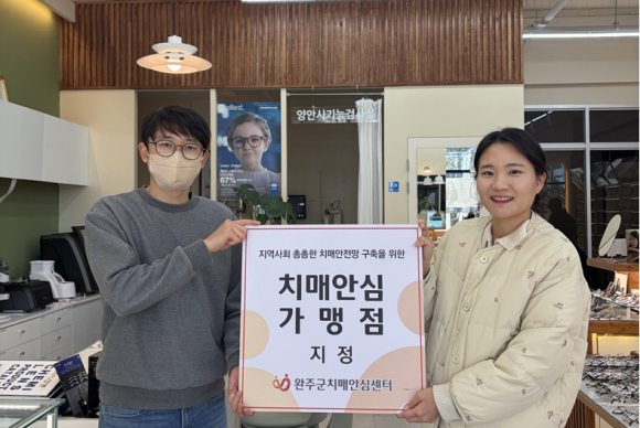 완주군이 삼례읍 플로랄리아, 아이루카 안경, 마육당, 맛없으면 사과, 신포우리만두 삼봉지구점, 봉동읍 경성푸드 등 6곳을 치매안심가맹점으로 신규 지정했다.