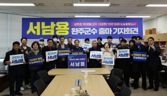 서남용 전 완주군의회 의장(더불어민주당 정책위원회 부의장)이 지난 22일 완주군청 브리핑룸에서 기자회견을 열고, 내년 6·3 지방선거 완주군수 출마를 공식 선언했다.