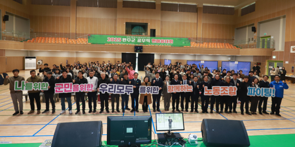 완주군청공무직노동조합(위원장 김상곤)은 지난 18일 완주군문화체육센터에서 ‘2025년 한마음대회’를 개최하고, 올 한 해 동안의 노고를 격려하고, 화합을 도모하면서 새로운 도약을 다짐했다.