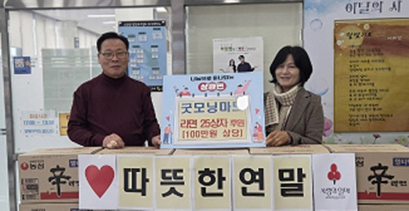 명절 햅쌀 지원 등 꾸준한 나눔 활동 펼쳐상관면 굿모닝마트(대표 현홍기)가 연말을 맞아 관내에 라면 25상자를 후원하며 지역사회를 향한 꾸준한 나눔 실천을 이어가고 있다.