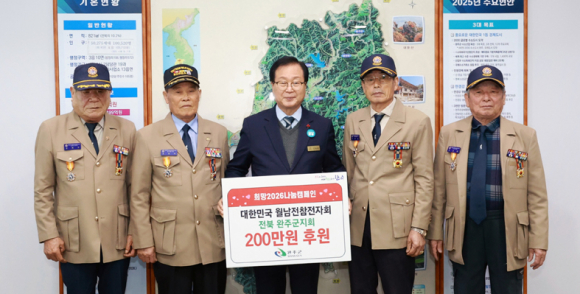 200만원 전달 “보훈 가치 실천, 나눔 활동 지속할 것”월남전참전자회 완주군지회(회장 유희빈)가 완주군에 취약계층을 돕기 위한 성금 200만 원을 기탁했다. 전달식에는 유희태 완주군수를 비롯해 월남전참전자회 완주군지회 표한수, 오희구, 임상영, 국원호 운영위원 등 관계자들이 참석했다.