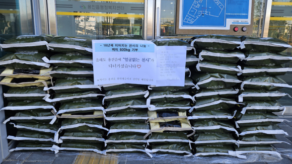 18년째 이어진 얼굴 없는 천사의 나눔이 올해도 용진읍(면장 설선호)을 따뜻하게 물들였다. 최근 용진읍은 지난 크리스마스 직후 직원이 행정복지센터 앞에 편지 한 통과 함께 백미 10kg 60포가 놓여있는 것을 발견했다고 밝혔다.