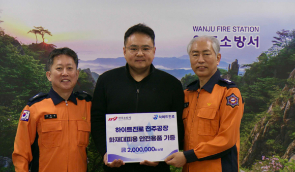 기부식에는 하이트진로 전주공장 최상기 안전보건팀장과 완주소방서 송성일 대응예방과장 등이 참석해 연말 나눔의 뜻을 함께했다. 기부 물품은 200만 원 상당의 구조손수건으로, 화재 발생 시 연기 흡입을 줄이고 신속한 대피를 돕기 위한 물품이다.