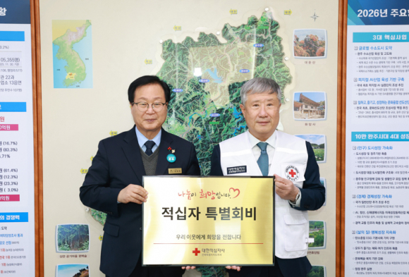 완주군과 완주군의회가 대한적십자사 전북지사 ‘2026년 적십자 특별회비’를 각각 전달했다.