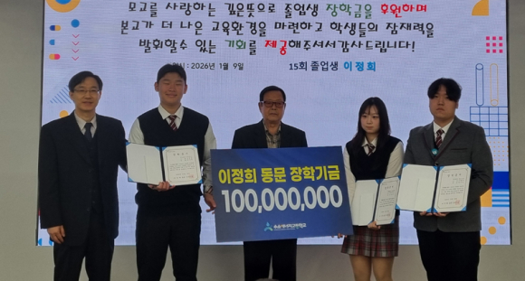 수소에너지고등학교가 졸업생의 장학기금 기부와 지역사회·기업·단체의 자발적인 참여를 바탕으로, 2026학년도 신입생 전원에게 입학 장학금을 지급한다.