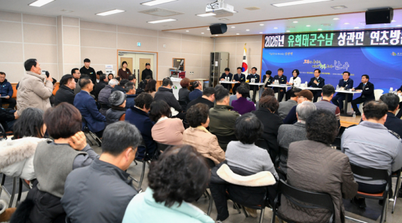 유희태 군수는 지난 13일 상관면(면장 국혜숙)과 동상면(면장직무대리 오성택)을 차례로 방문해 2026년 군정 운영 방향을 공유하고, 지역별 주요 현안 사업을 점검했다.