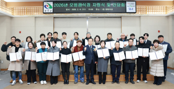 군은 최근 ‘2026년 모범음식점 지정식 및 간담회’를 개최하고, 관내 일반음식점 38개소를 모범음식점으로 재지정했다.