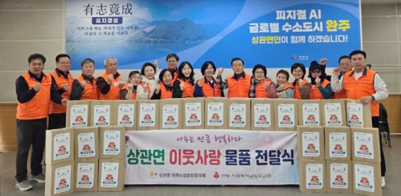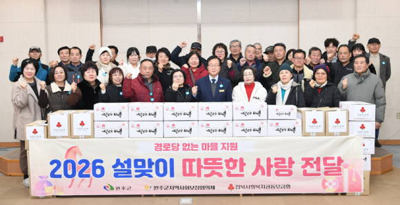 이장·부녀회장 직접 방문해 안부 확인 ‘찾아가는 복지’실현완주군이 설 명절을 앞두고 ‘경로당 없는 마을’ 어르신들을 살뜰히 챙기고 나섰다. 군은 지난 5일 전북 사회복지공동모금회, 완주군지역사회보장협의체와 함께 ‘2026 설맞이 따뜻한 사랑 전달 나눔’ 전달식을 가졌다.