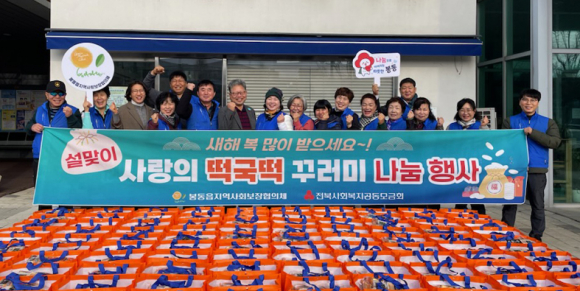 100가구에 떡국떡·사골곰탕·종이행주·견과류 등 나눔봉동읍지역사회보장협의체(공동위원장 윤당호·국인숙)가 설 명절을 앞두고 취약계층 100가구에 떡국떡, 사골곰탕, 종이행주(키친 타월), 견과류 등 6개의 품목으로 알찬 꾸러미를 만들어 전달했다.