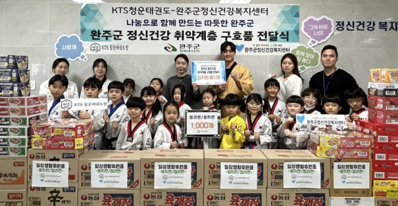 어린이 관원 나눔 참여 “나눔 활동 지속할 것”KTS청운태권도(관장 김현준)가 지난 4일 완주군정신건강복지센터(센터장 강남인, 마음사랑병원 진료과장)에 라면 1,000개를 전달했다.