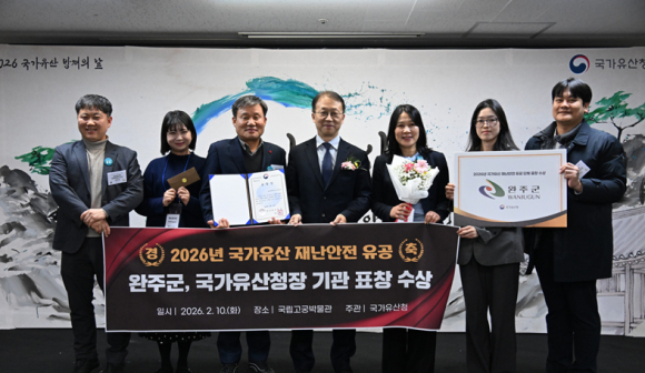 완주군이 지난 10일 서울 국립고궁박물관에서 전국 시군 중 유일하게 ‘2026 국가유산 재난 안전 유공’ 국가유산청장 기관 표창을 수상했다.