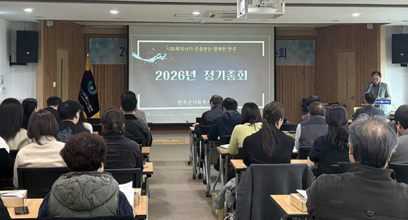 완주군사회복지사협회(회장 유재현)는 지난 달 26일 완주군가족문화교육원 가족홀에서 100여 명의 사회복지사가 참석한 가운데 ‘2026년도 정기총회’를 개최했다.