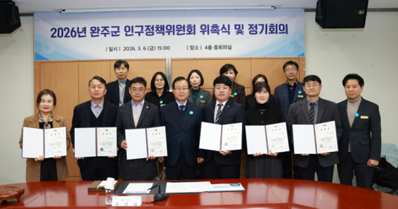 새롭게 구성된 인구정책위원회는 이종훈 부군수를 위원장으로 당연직 공무원 6명, 군의원 및 인구·청년·복지분야 전문가 9명 등 총 15명으로 구성됐다. 위원 임기는 2년이며, 완주군 인구정책 전반에 대한 자문과 정책 심의 역할을 맡는다.