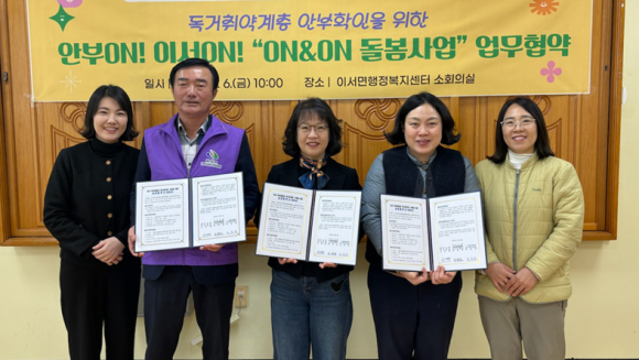 이서면이 지난 6일 지역사회보장협의체(공동위원장 소미례·전택균), hy한국야쿠르트 전주혁신점(점장 김용란)과 손잡고 복지 사각지대 해소 및 사회적 고립 가구 고독사 예방을 위한 업무협약(MOU)을 체결했다.