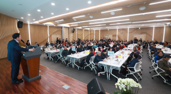 | ↑↑ 봉동농협이 운영공개 및 좌담회를 성황리에 개최했다. 사진은 운영공개 및 좌담회에서 김운회 조합장이 인사말을 하고 있는 모습. |