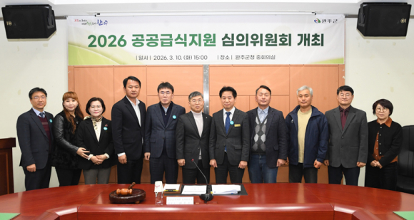 ‘공공급식 지원 심의위원회’는 위원장인 부군수와 완주군의회 부의장, 영양교사, 학부모 대표, 어린이집 대표, 복지급식 단체 대표, 생산자 단체 대표, 전북특별자치도 먹거리 통합 지원 센터 관계자 등 관련 분야 위원 13명으로 구성돼 있다.