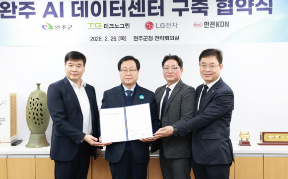 최근 완주군은 ㈜테크노그린 대표, LG전자 어플라이드사업담당, 한전KDN 본부장 등이 참석한 가운데 ‘완주 에이아이(AI) 데이터센터 구축·운영 업무협약’을 체결했다.