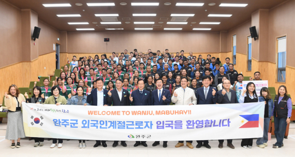 완주군이 필리핀 미나시와 랄로시에서 온 계절근로자 109명을 맞이하며 본격적인 농촌 인력 지원에 나섰다.