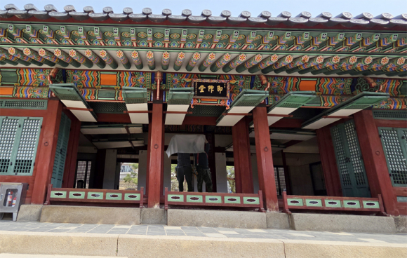 | ↑↑ 소양 대승한지마을에서 생산하는 전통 한지가 덕수궁 보수공사에 사용된다. 사진은 덕수궁 즉조당 보수공사 모습. |
